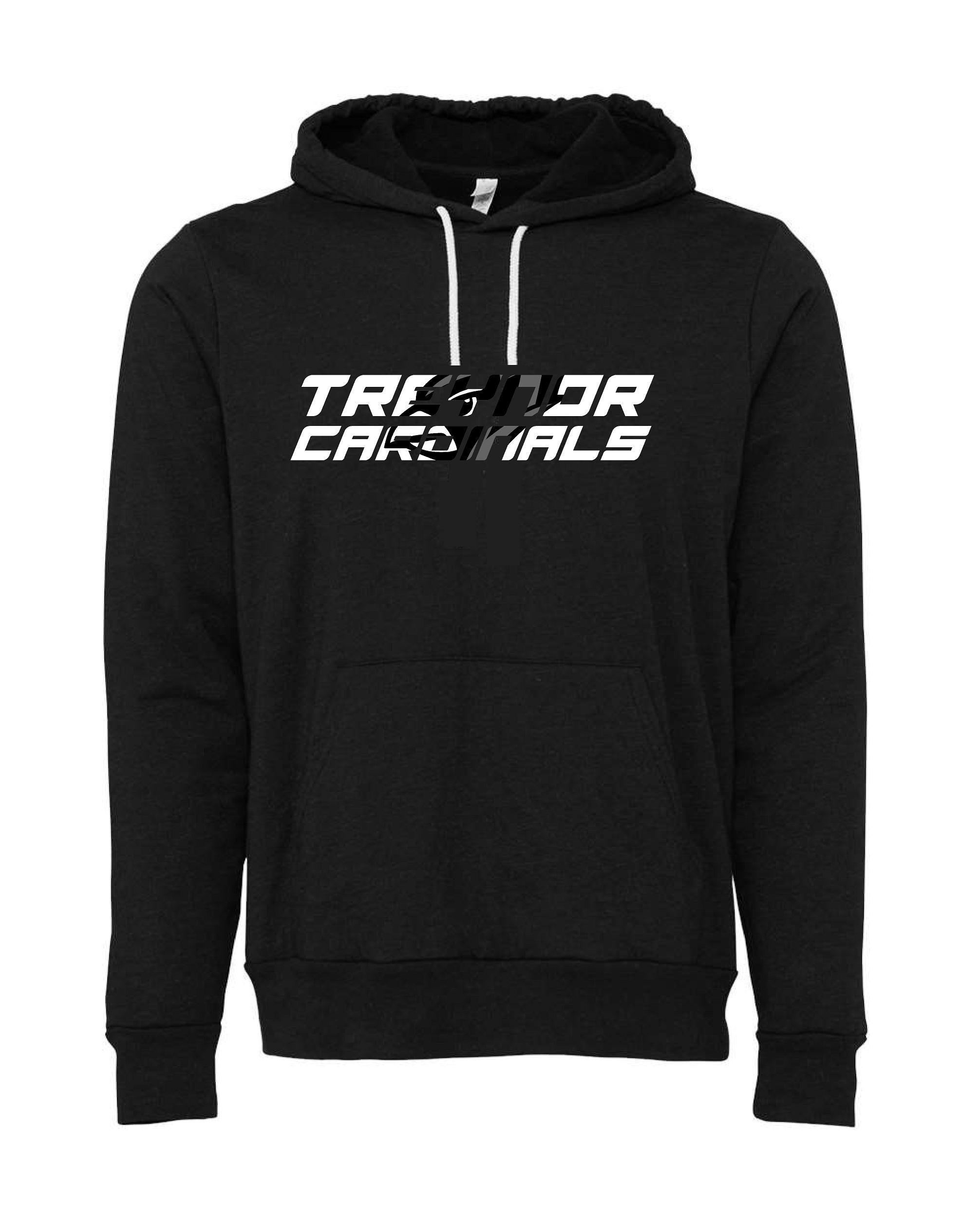 Bella + Canvas premium Blackout Hoodie (youth black, adult black heather) featuring the Hidden Cardinal logoAdult and Youth sizes available